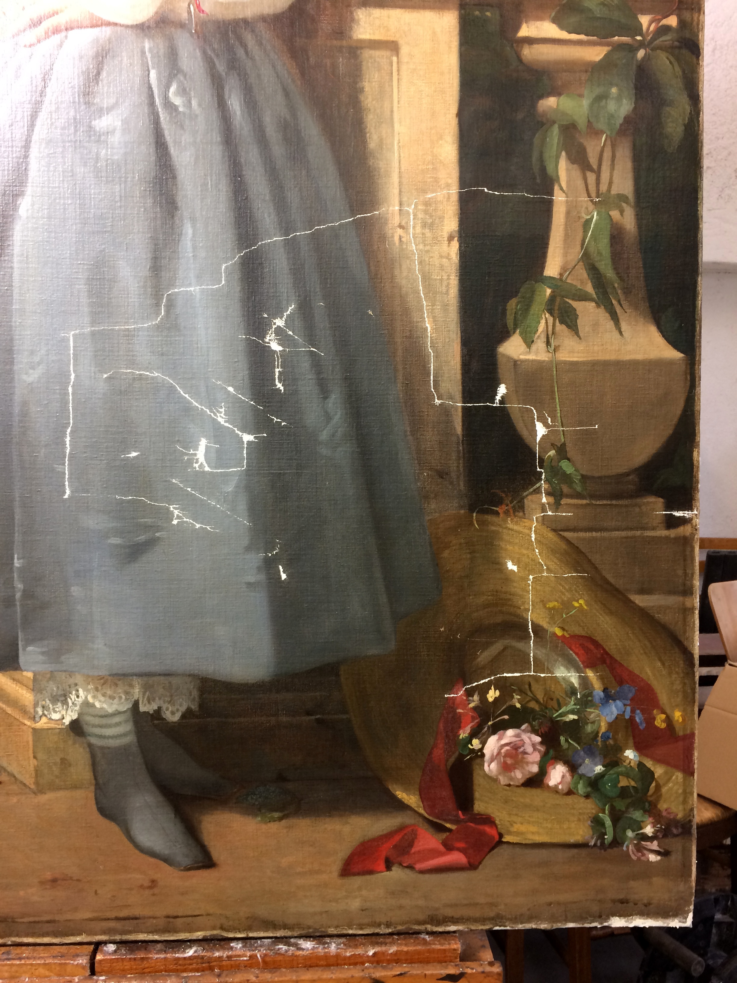 Canvas’s treatments can be locals (consolidation of a tear, adhesive injections, treatment of a canvas deformation) or generals (consolidation of the whole canvas).