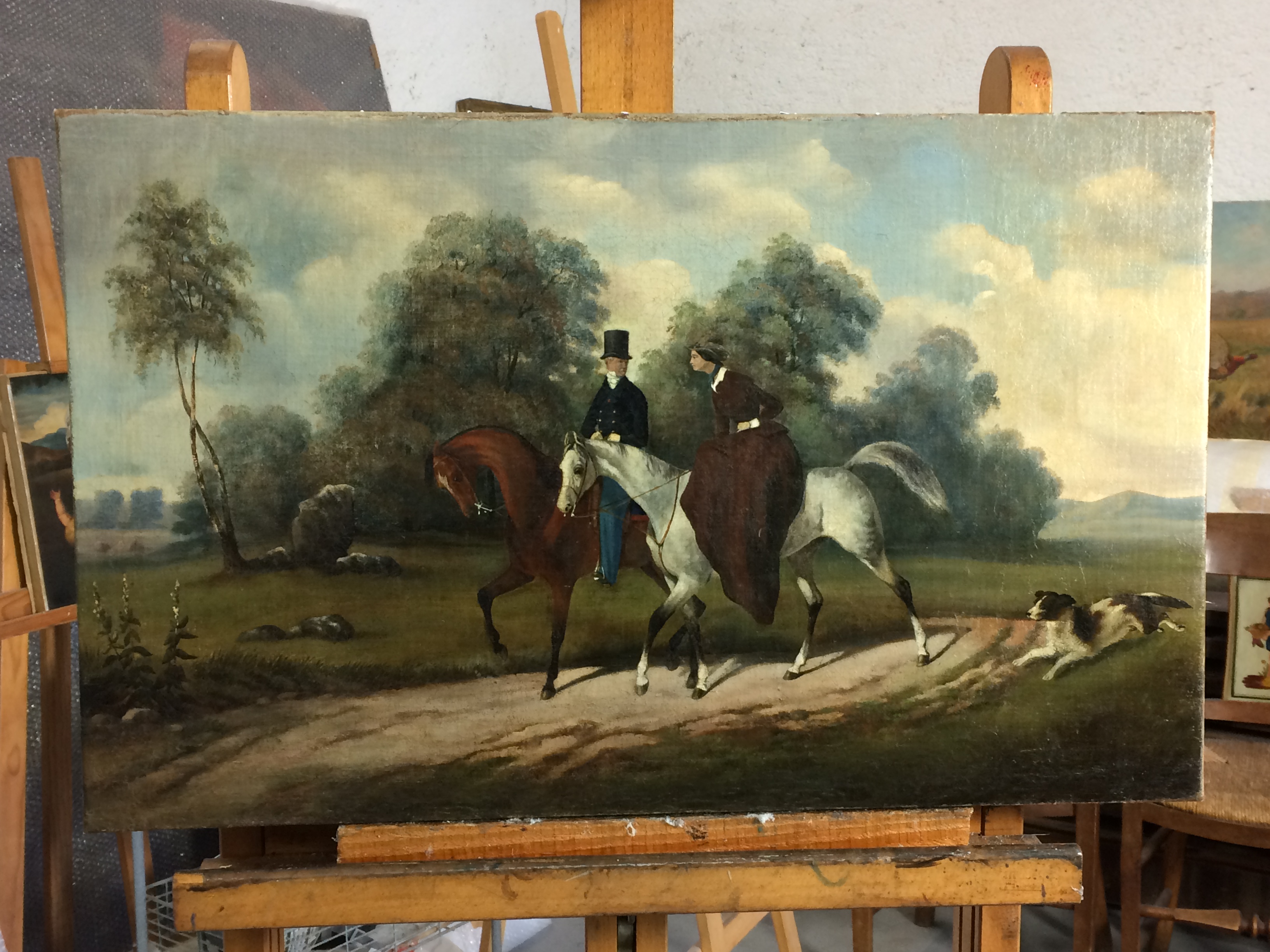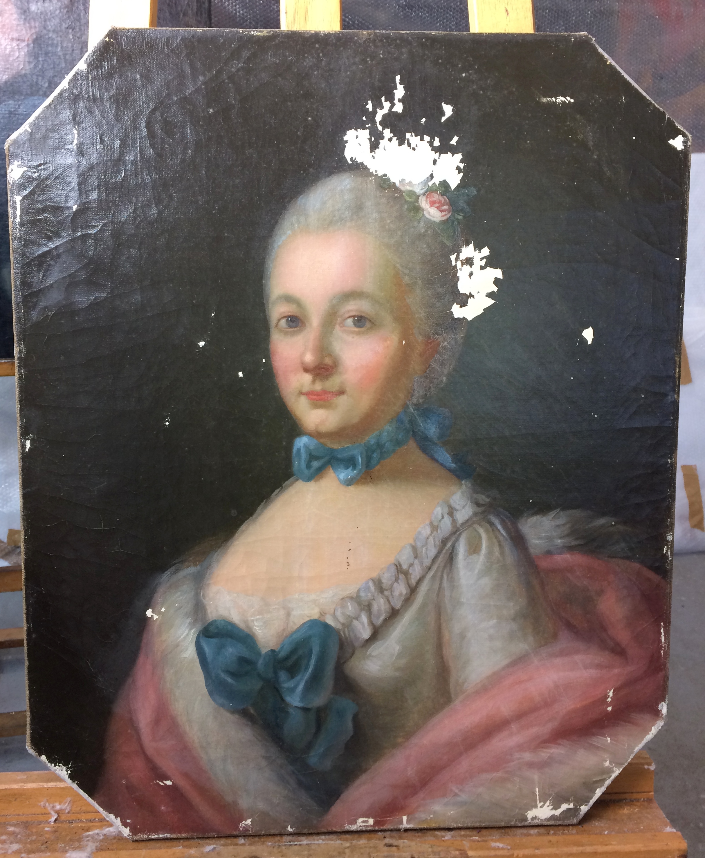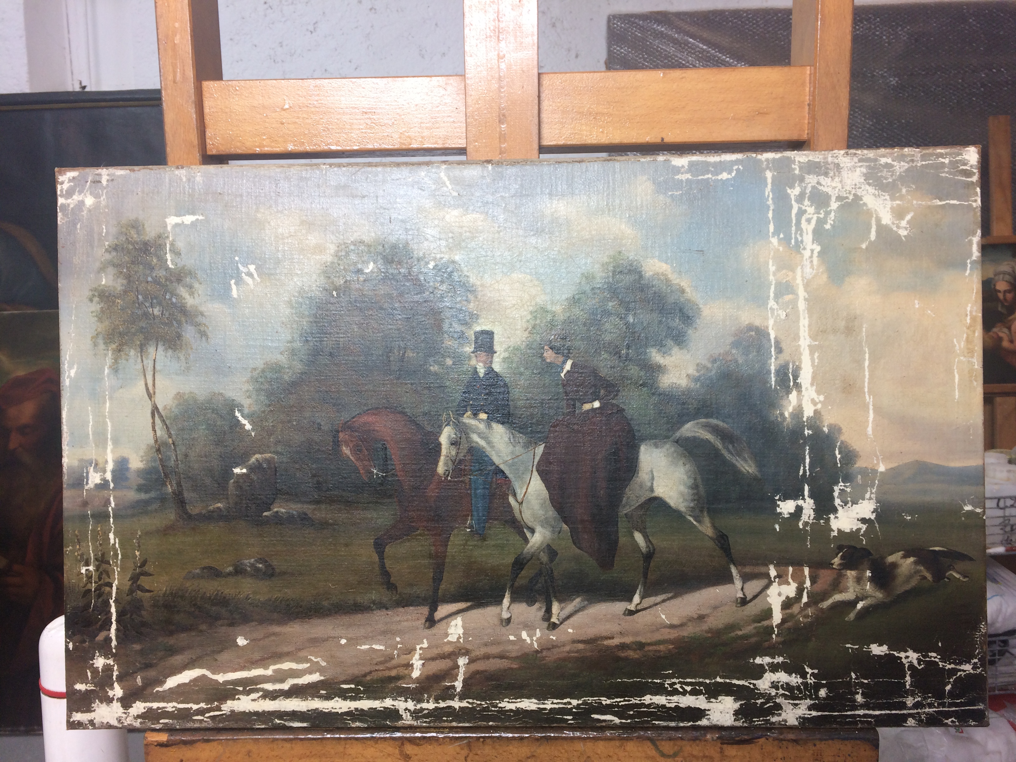 Nos interventions sur la couche picturale peuvent comprendre des nettoyages, dévernissages, refixages locaux, comblement de lacunes et retouches.