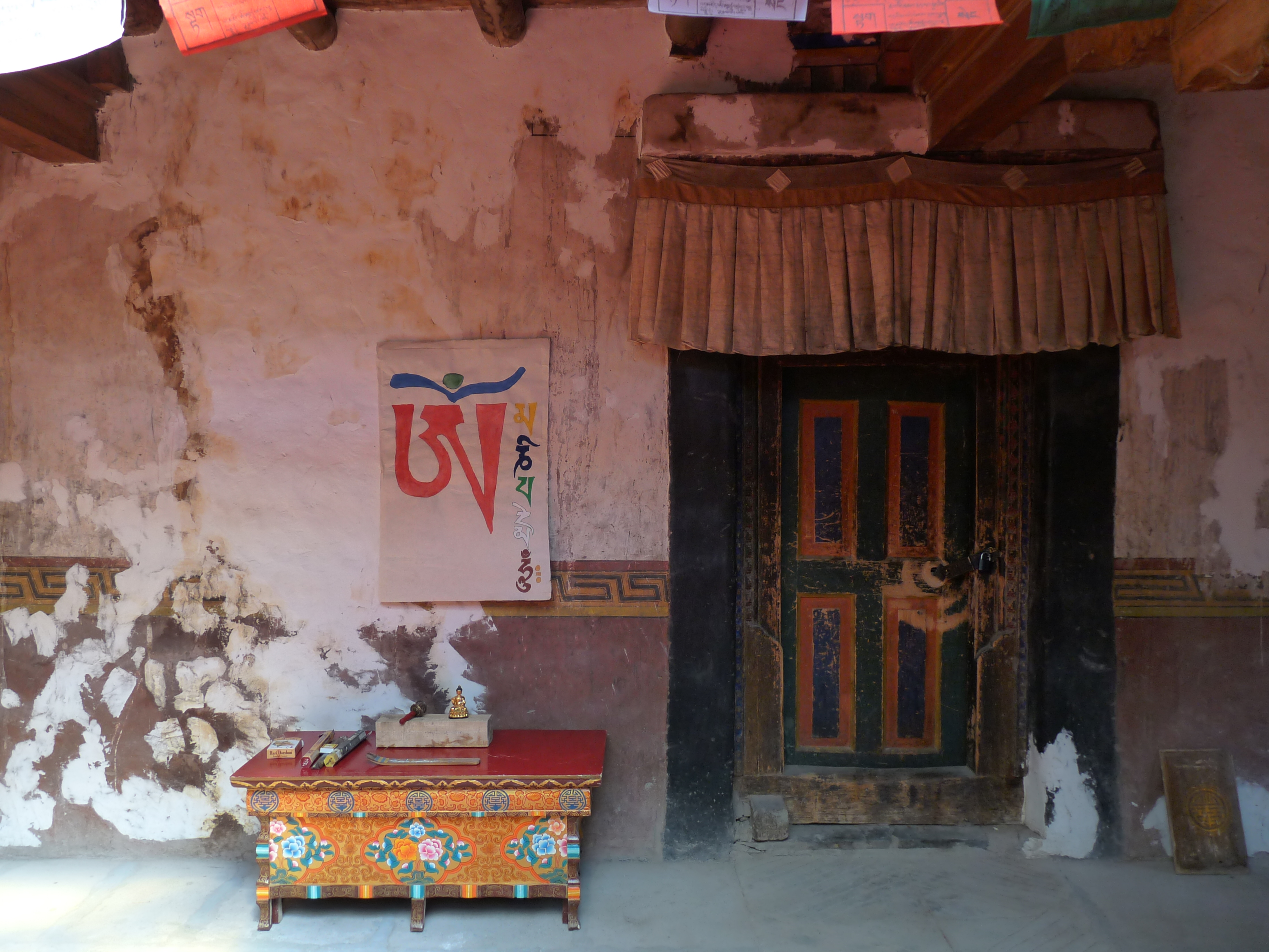 The yak glue paintings covering the walls are water sensitive and have suffered a great deal from temperature differences (25°C in summer versus -30°C in winter)…